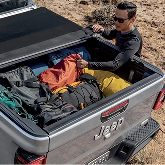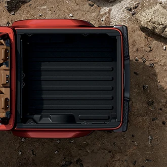 Jeep functionality and versatility are celebrated in the centre console and distinguished with metal-plated accents. The centre console houses gear shift selection, transfer case and parking brake. Real bolts featured on the shifter, grab handles and the infotainment screen’s frame highlight genuine construction methods.A push-button starter, featuring a weather-proof surround, is standard on the Gladiator and is easily located within the driver’s reach.